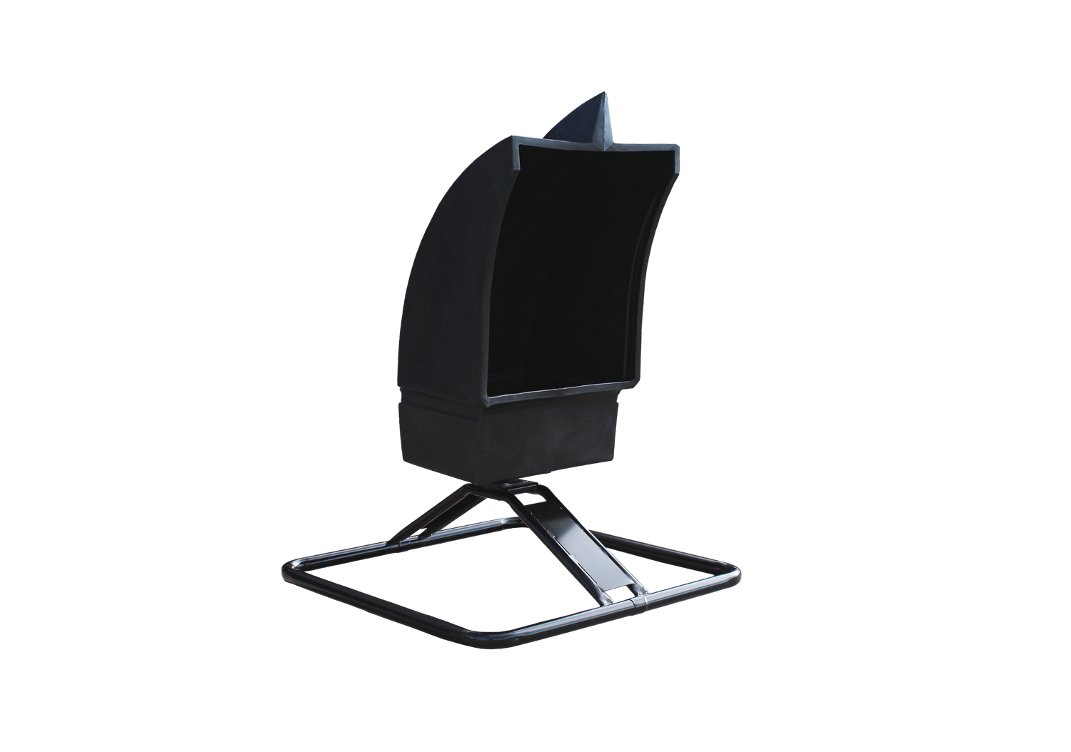 The Upright Mineral Feeder is designed for easy feeding and stability, making it ideal for larger and horned cattle. It features a stable low center of gravity, a molded wind vane for directional control, and a rotating design to protect supplements from the elements. Its strong steel tubing construction ensures durability and strength.